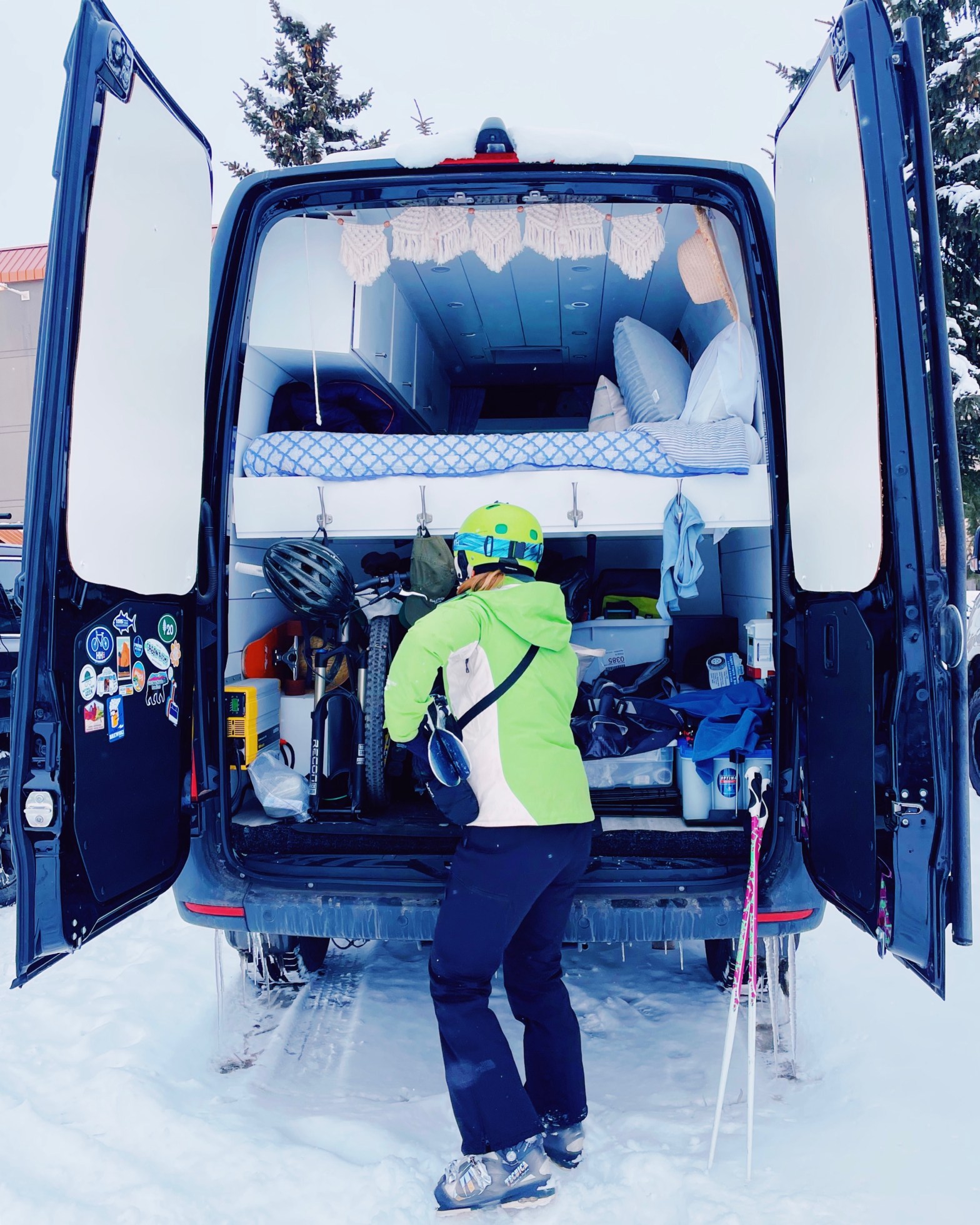 “You’re up early braving the cold!” she says to me as I walk over to the cash register with the sticker to be added to my collection on the inside of the van’s rear doors.