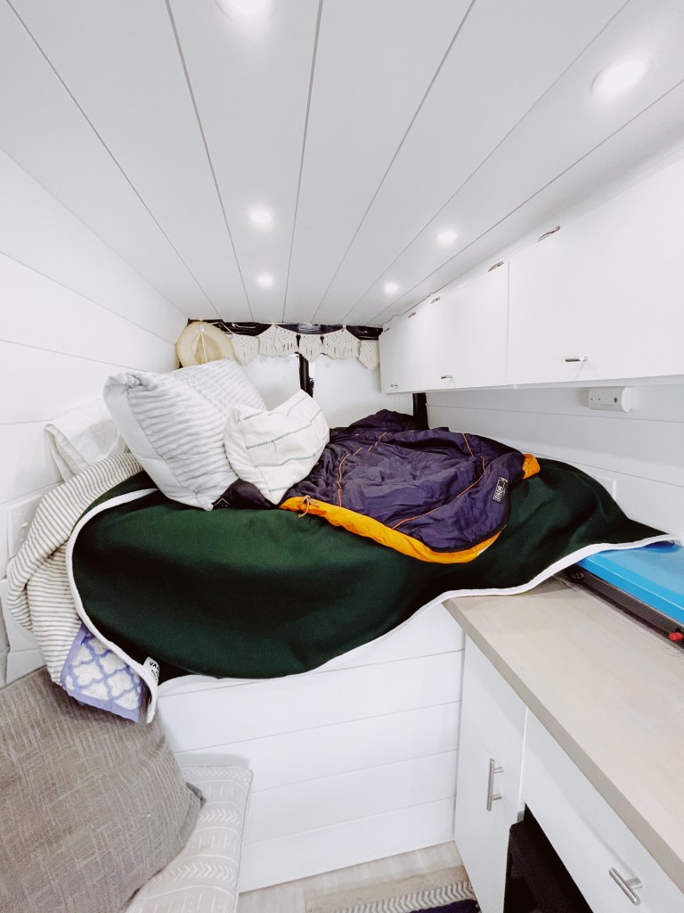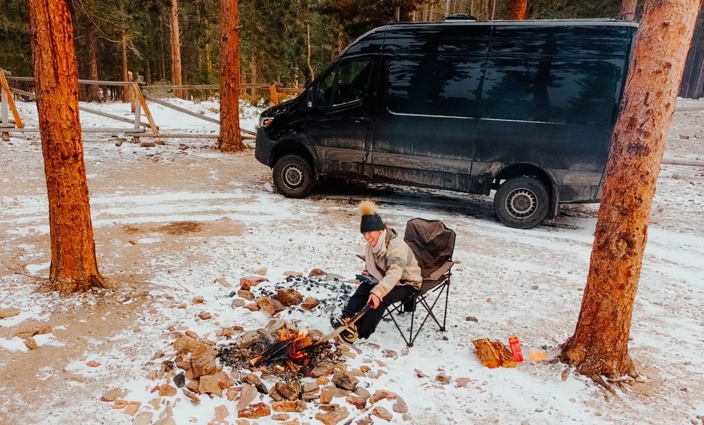 I burrow deeper into my sleeping bag, grateful for the extra pair of wool socks I decided to put on before getting into bed, and listen to the howling wind angrily course through the Moraine Campground in Rocky Mountain National Park.  Like a swaddled baby in an oversized crib, I try to let the gusts of wind gently rocking the van carry me off to sleep.
