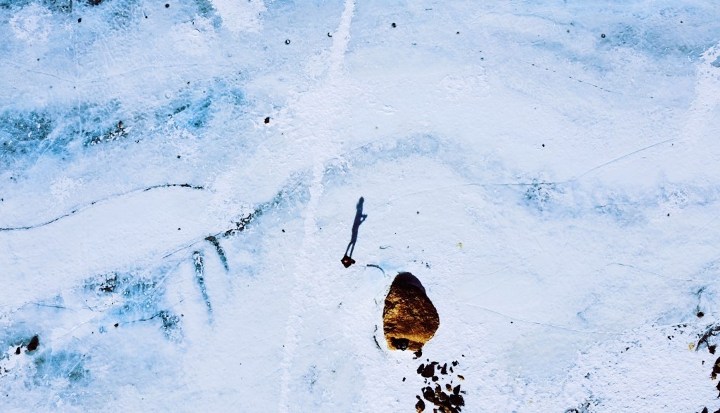 5 minutes later, no longer sheltered by the trees and standing in front of what must be the frozen over Dream Lake (supposedly one of the best views in the park) I’m met by a surge of wind that sends me backwards.  I lower my head, put on my hood, and attempt to take a few steps forward. I look up briefly and see no trail in front of me, only whiteness.  I’m met again by a combination of wind and snow that whips me around and sends me back into the protection of the trees. I retreat back the way I came.